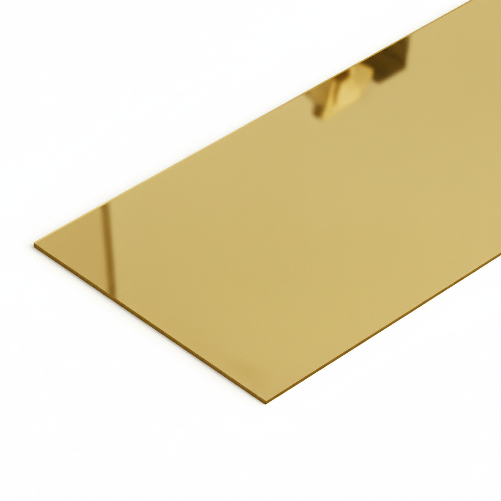 Mirror acrylic is available in multiple reflective finishes such as silver, gold, rose gold, bronze, and colored mirrors, depending on sheet availability. The reflective surface is protected with a masking film during cutting.